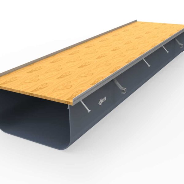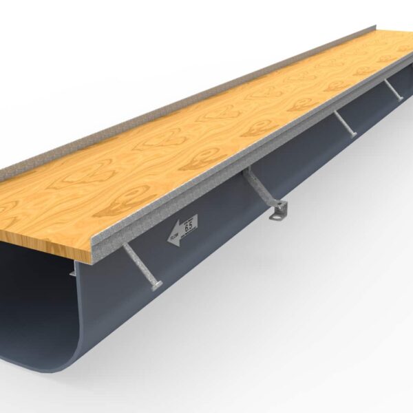 This general purpose commercial trench drain system can handle flows in the 90 cfs (40,000 gpm) range. This trench drain system comes in pre-sloped 8′ lengths with heavy plywood cover and installation aides standard. Offered with a wide selection of frames and 50″ wide trench drain grates to meet any design requirement. This is the largest standard commercial and industrial trench drain that Dura Trench manufactures. This trench drain is often used when multiple trench drains converge into one header trench. This trench drain is primarily seen in heavy industrial applications and occasional civil applications.