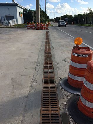 This general purpose commercial trench drain system can handle flows in the 22 cfs (10,000 gpm) range. This trench drain system comes in pre-sloped 8′ lengths with heavy plywood cover and installation aides standard. Offered with a wide selection of frames and 20″ wide trench drain grates to meet any design requirement. This is the start of the larger high flow trench drain systems. This size trench drain is sometimes used in commercial or industrial projects, but is most commonly seen in demanding civil trench drain applications. This can be used in steep cross slopes where all flow must be captured in the trench drain. Also useful in large paved areas where the flows exceed that of a smaller size trench drain.