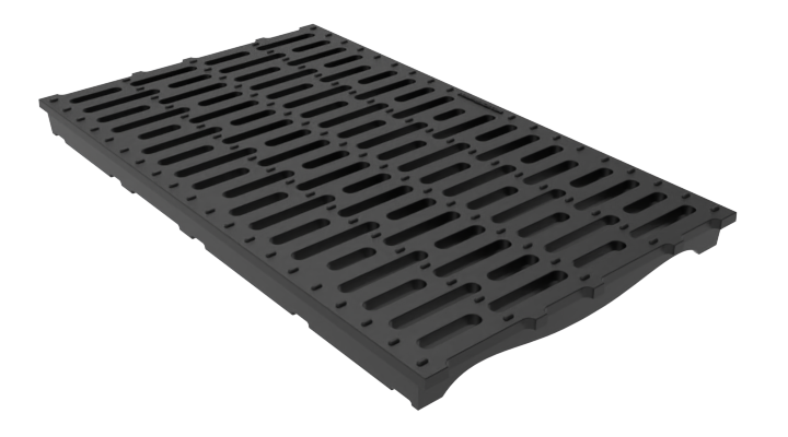 Grating shall be 14SBAC24DBF extreme duty ADA compliant slotted grate. The grate shall be made of grade 80-55-06 cast ductile iron conforming to ASTM A 536-84. The grate shall be coated black. The grate shall be 14″ wide x 24″ long x 2.25″ thick (1.5″ at grate seat) and shall exceed DIN class F, FAA AC150/5 320-6F appendix 3 load, AASHTO M306-9 grate/manhole proof test, and be AASHTO H-25 rated.