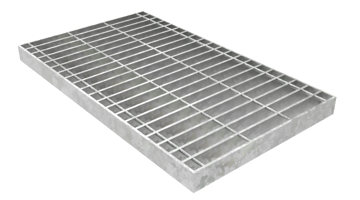 Grating shall be 14SGLR24MG2 bar grating. Grates shall be trim banded. Grate shall be post fabricated hot dipped galvanized per ASTM A-123. The grate shall be 12″ wide x 24″ long (typ.) x 1 1/2″ thick with 3/16″ thk. bearing bars at 1 3/16″ o.c. and 4″ o.c. cross bars.