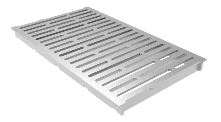 Grating shall be 14SBAF24SSC heavy duty ADA compliant slotted grate. The grate shall be fabricated from T304 stainless steel per ASTM-A240. The grates shall have a bead blast finish. The grates shall be 14″ wide x 24″ long x 1.5″ thick and have a minimum load rating of DIN Class C (exceeds H-20/HS-25).