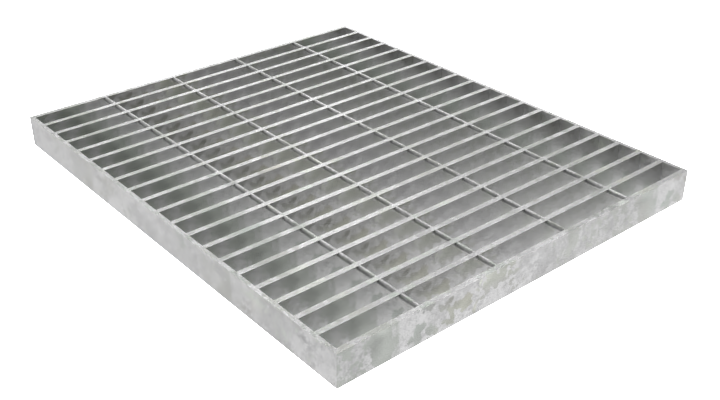 Grating shall be 20SGLR24MG3 bar grating. Grates shall be load banded. Grate shall be post fabricated hot dipped galvanized per ASTM A-123. The grate shall be 20″ wide x 24″ long (typ.) x 1 1/2″ thick with 1/4″ thk. bearing bars at 1 3/16″ o.c. and 4″ o.c. cross bars.