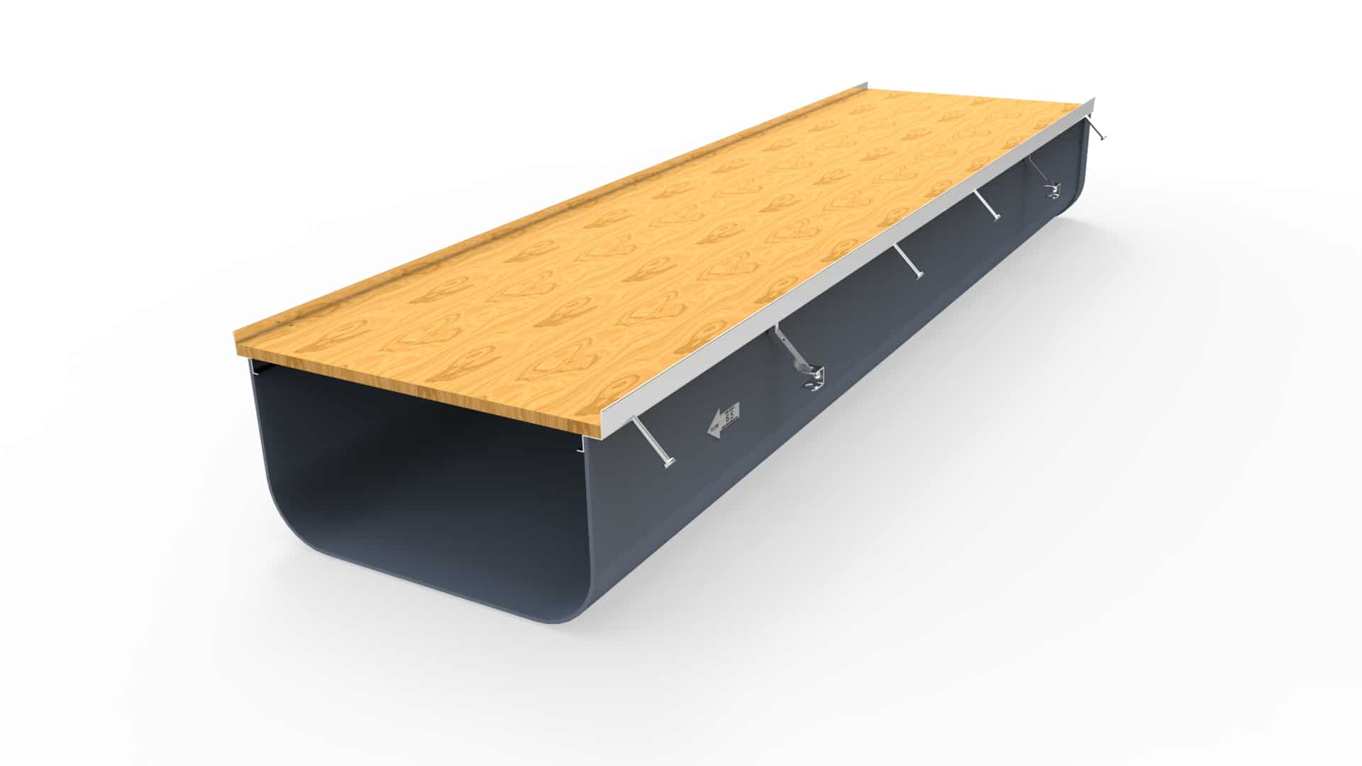24″ wide interior trench drains can be sloped from 7″ to 18″ deep typical. Typically used for flows up to 35 cfs (16,000 gpm). Frame options are medium duty galvanized steel, medium duty stainless steel, heavy duty black powder painted steel, heavy duty galvanized steel, heavy duty stainless steel, and extreme duty galvanized steel. Comes complete with installation brackets, plywood covers, end plates and outlets. Accepts any of the 26″ wide trench drain grates. (contact us for pricing and availability on deeper depths)