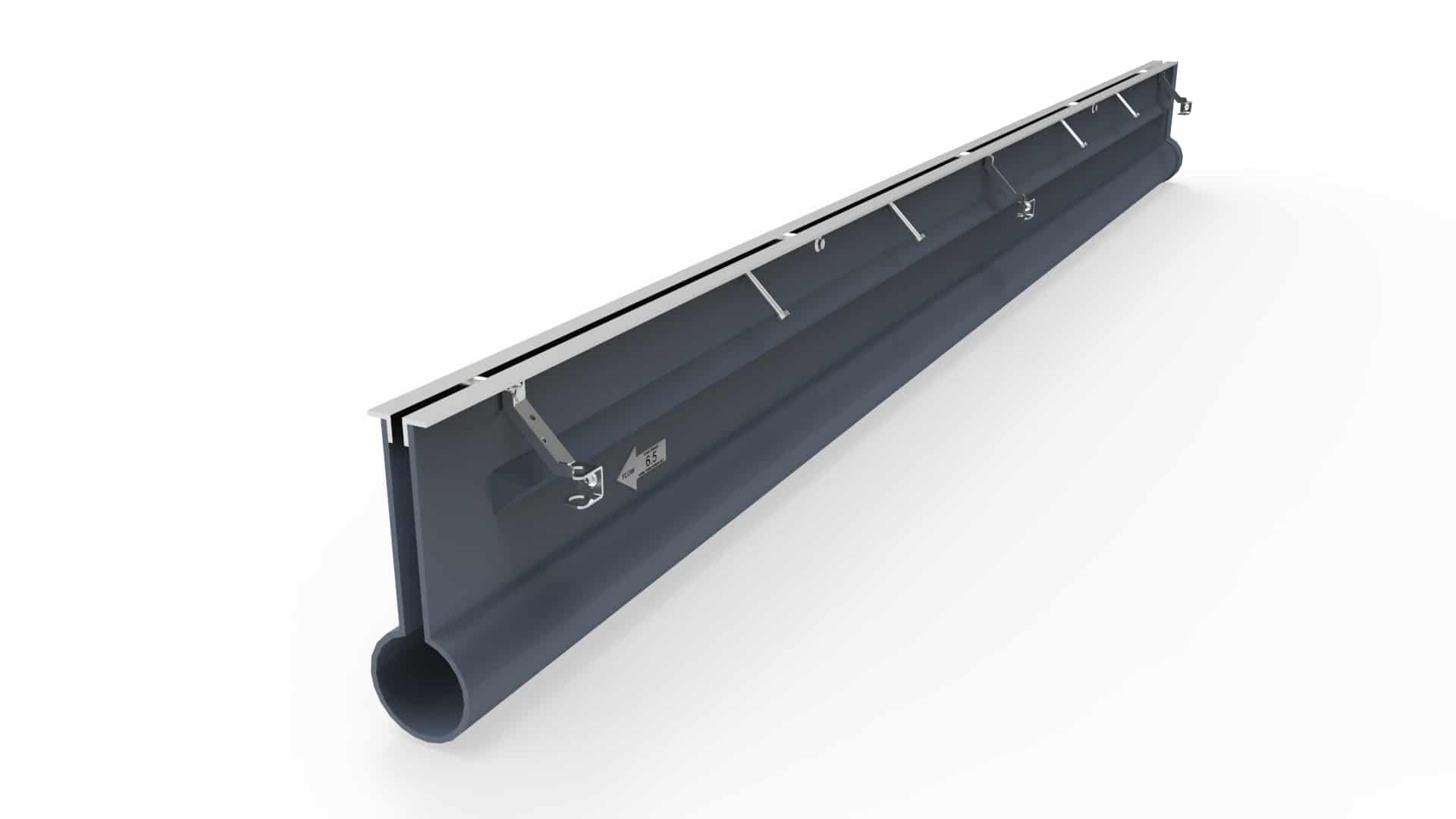 4″ diameter slotted drains (slot drains) can be sloped from 8″ to 18″ deep typical. Typically used for flows up to 0.25 cfs (110 gpm). Four inch slotted drain frame options are medium duty and heavy duty in aluminum, black powder painted steel, galvanized steel, and stainless steel. Comes complete with installation brackets, end plates and outlets. (contact us for pricing and availability on deeper depths)